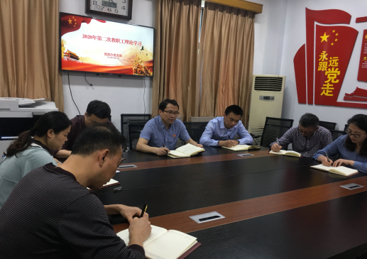 4月30日下午,党政办党支部开展了“疫情防控践初心、严峻斗争担使命”的主题党日活动。活动由党支部书记谢四平主持,采取线上线下融合、主会场分会场并重的方式进行。主会场设在党支部活动室,全体处级干部和没有即办任务的党员全部集中;分会场设在有会务、用印和发放目标责任书等任务的各科室工作现场。分会场党员通过“welink”既可以全程参与支部活动,又可以为前来办事的师生提供服务,做到学习和工作统筹兼顾。