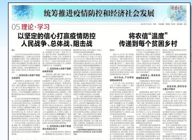 2020年2月25日,校党委书记高山(党政办党支部成员)在湖南日报上发表理论文章《以坚定的信心打赢疫情防控人民战争、总体战、阻击战》。