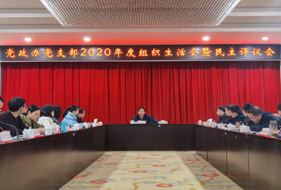 1月25日,党政办党支部在视频会议室召开2020年度组织生活会,校党委书记高山以一名普通党员身份参加了会议,过双重组织生活。会议由支部书记谢四平主持,机关党委书记彭仲生到会指导,党支部全体党员与会。