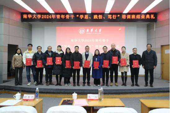 高山充分肯定了培训班成效、全体学员成长发展取得的成绩及良好精神面貌,向全体学员顺利结业表示祝贺。他说,青年人才是学校建设的中坚力量,关系着南华发展与前途,是南华的未来与希望。要牢记学校党委、行政和全校师生的期许,将“学思、践悟、笃行”贯穿于学习、工作和生活之中,在爬坡过坎的实践中明确奋斗目标与方向,勇于追求卓越、超越自我,始终做到视野开阔、实事求是、坚韧不拔。