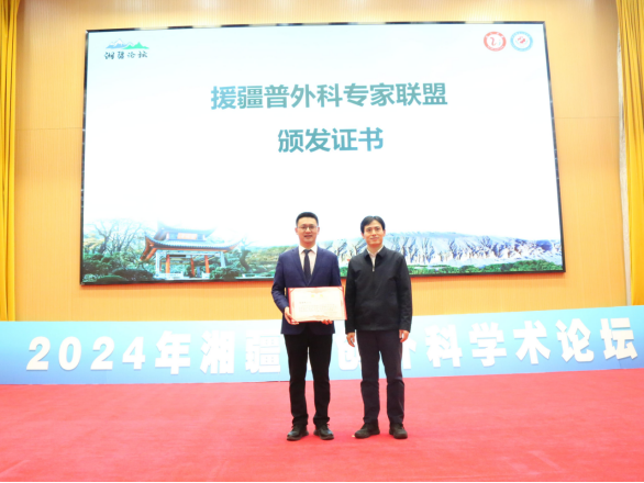 在抓好“师带徒”线性传承的同时,他还积极探索“团队带团队”的新教学模式。他积极与后方医院建立深度合作关系,签订“名医工作室”“专科联盟”等协作共建协议,先后邀请湖南专家51批次232人次来医院开展学术讲座、技术指导、教学查房、手术带教等活动;创新开设“青年骨干人才培训班”,以四阶段(理论授课+模拟教学+实践训练+进修跟学)融入式培养模式,开展理论授课、技能培训30余场次,让医院获得持续向上生长的“内力”。他坚持以创新为指引,打造“湘疆论坛”特色学术品牌,采取线上线下、继续教育等方式,邀请疆内外医疗专家共同举办湘疆微创外科学术论坛等学术交流活动37余场次,惠及医务人员3000余人次。他还代表19个省市医疗援疆在全国“组团式”支援工作推进会上作典型发言、受邀出席第四届“一带一路”院士高峰论坛、“华夏微创医学论坛”等学术大会作交流经验。