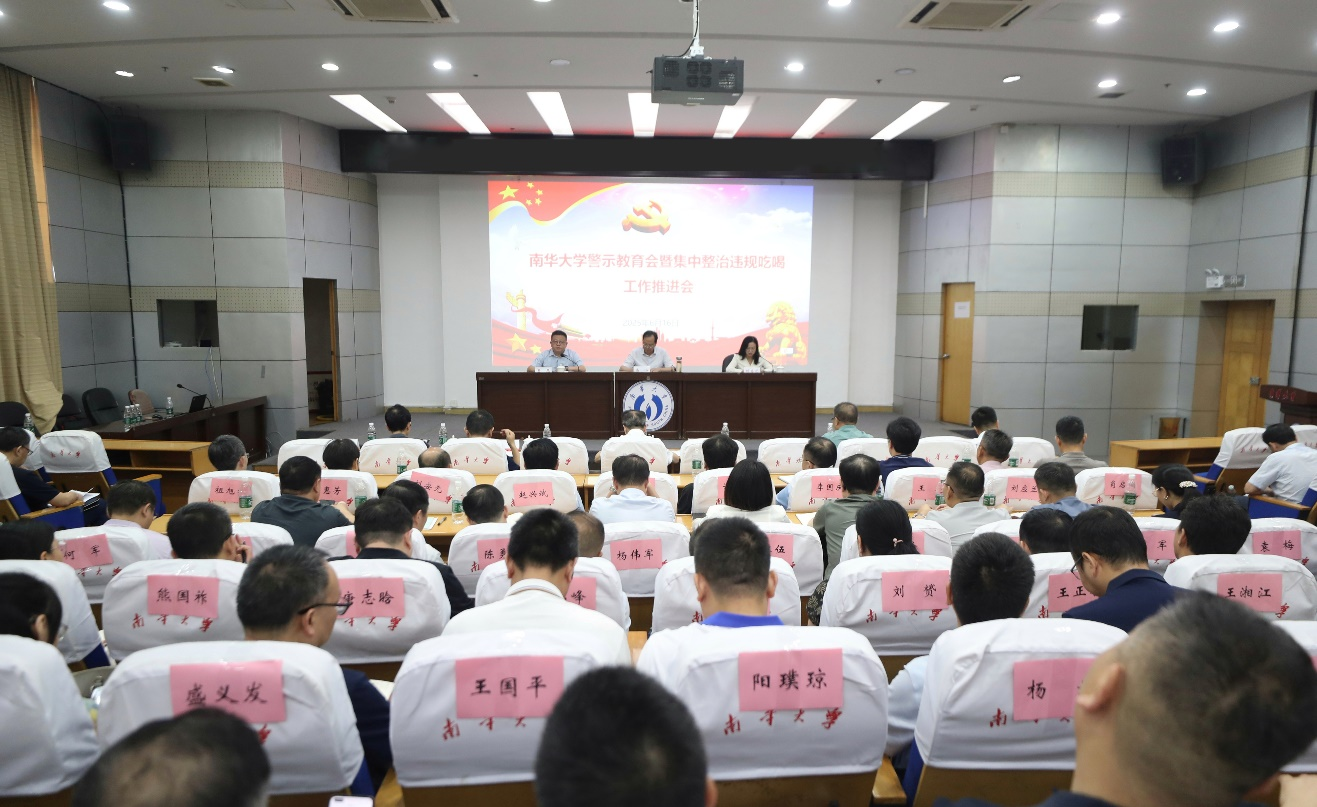 校本部及附属医院全体副处级以上领导干部及学校学习教育工作专班人员参加会议。会上集体观看了警示教育片《铁规如磐作风长清》。