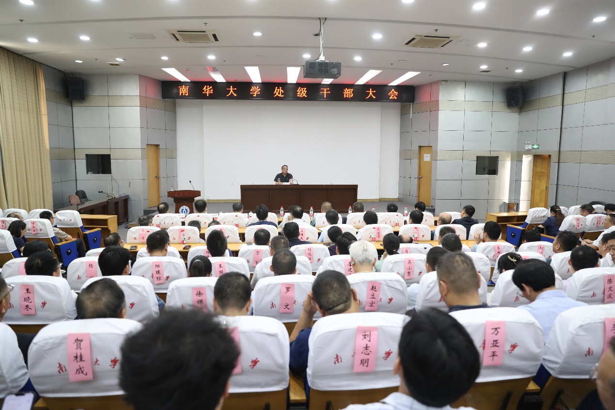 张灼华指出,“十五五” 时期是学校实现高质量发展、建设特色鲜明高水平大学的关键五年,必须以更高站位、更宽视野、更实举措扛牢教育强国使命,推动学校实现“双一流”目标。他从三个方面对2025年下半年重点工作进行了安排部署:一是开学和新生入学工作要再用心,切实做好开学各项工作,确保老生开学教学秩序井然,细化"一站式"报到流程,让新生初入南华即感受家的温暖;二是年度各项重点任务要再加速,加速推进人才引育、学科与研究生教育、教育教学改革、科研、医教研协同、对外交流等工作,协同推进“绿色校园”“数字校园”建设,做好“校友回湘”等其他工作,确保完成全年目标任务;三是“十五五”规划要再加压,要全面总结“十四五”经验,加强调查研究,找准发展定位,以未来眼光和标准高质量谋划“十五五”规划。