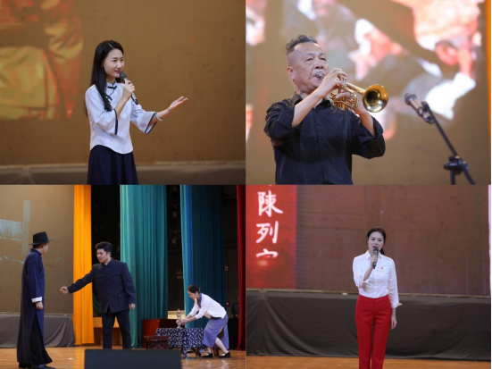 活动以艺术为媒介,将厚重的历史转化为生动的情感体验。小号独奏《太行山上》以激昂旋律再现抗战岁月的壮怀激烈;故事讲述《双枪女将——伍若兰》深情刻画了革命先烈伍若兰为信仰英勇献身的感人形象;情景剧《绝笔》通过舞台表演,立体展现了衡南“归园”隐蔽战线“一门四忠烈”的坚定信仰;《上马杀贼 下马学佛》则讲述了南岳佛道教人士团结抗日的家国情怀;《共产党籍不可牺牲》以黄埔英杰蒋先云的革命事迹,诠释了何为“信仰高于生命”。诗朗诵《湘南学联正青春》以青春之声致敬历史,互动答题环节更让学生们在思考中深化对红色精神的理解。全场在《歌唱祖国》的合唱中落下帷幕,激昂歌声激荡起澎湃的爱国热情。