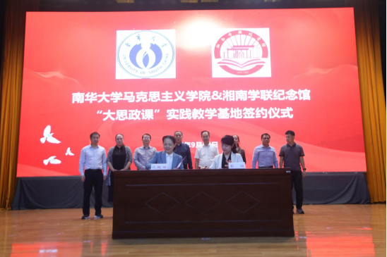 王利华在致辞中指出,此次“思政课”大活动,既是学校深化“大思政课”建设、创新思政教育形式的重要实践,更是推动红色文化资源与思政教学深度融合、构建“大思政”育人格局的关键举措。学校与湘南学联纪念馆正式签署“大思政课”实践教学基地共建协议,这标志着校馆协同育人迈入新台阶。期待双方紧密合作,联合开发红色思政课程资源、共同开展课题研究、常态化组织实践活动,让思政课既有理论的“深度”,更有实践的“温度”,引导青年学生在红色传承中找准成长方向,主动将个人发展融入“三高四新”战略实践,以勤学笃行练就过硬本领,以担当实干践行初心使命,在服务国家战略、助力地方发展中展现南华青年的智慧与力量!