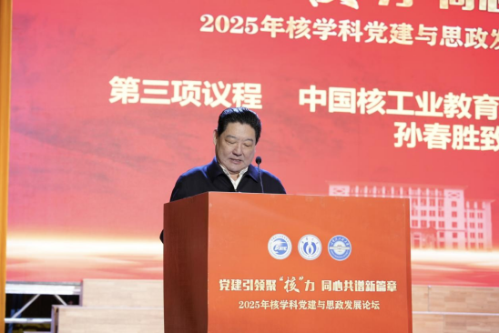 孙春胜在致辞中代表学会对论坛召开表示热烈祝贺,对PA视讯平台的精心筹备表示感谢。他指出,本次论坛恰逢“十四五”收官与“十五五”谋划的关键节点,是深化党建与核学科融合发展的生动实践。他强调党建是核事业行稳致远的根本保证,期待与会同仁深入交流,以党建“红”引领核业“兴”,并表示学会将继续发挥平台优势,全力支持核学科高质量发展。