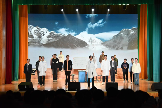 这些生动场景引发观众强烈共鸣,让人热泪盈眶。核科学与技术学院2025级本科生李同学激动地表示:“作为核专业学子,我们要传承这份‘种子精神’,把个人理想融入国家核工业发展。”演出尾声,丁峰培养的学生们奔赴核工业各条战线,“漫山遍野,松柏已成林”的台词在剧场中回荡,既呼应了“青山”的意象,更彰显了核工业精神的代代相传。