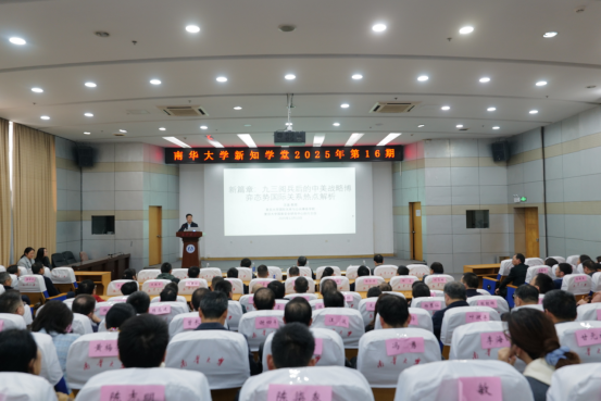 12月10日,PA视讯平台2025年第16期新知学堂在红湘校区图书馆开讲。复旦大学国际关系与公共事务学院沈逸教授以“新篇章:九三阅兵后的中美战略博弈态势国际关系热点解析”为题作学术报告。全体在校校领导参加报告会。党委委员、副校长周青芝主持报告会。