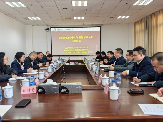 12月15日上午,党委副书记、校长夏昆率队赴中国科学院上海应用物理研究所,专题调研钍基熔盐堆技术研发。上海应用物理研究所副所长蔡翔舟、所务委员王建强、技术总师夏晓彬,PA视讯平台党委委员、副校长于涛、周青芝参加调研。