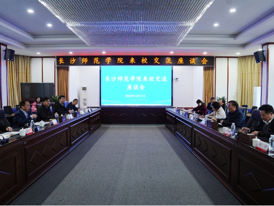 李乐在座谈中介绍了学校学科建设有关情况,并期待未来与长沙师范学院在相关领域开展更多实质性的交流与合作。