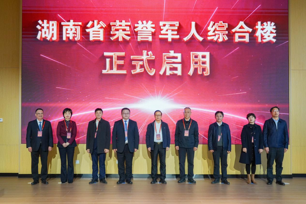 在全体参会人员见证下,与会领导共同启用湖南省荣誉军人综合楼。该楼总建筑面积近1.45万平方米,含地下2层、地上5层,涵盖疗养区、康复区、中医康复、伤残鉴定等功能区域。作为推进“平战结合”高水平三级甲等荣军优抚医院建设的重要基础设施,综合楼的投用标志着湖南省荣军优抚事业迈入硬件升级、服务提质的新阶段,将进一步改善优抚对象疗养与医疗保障条件,为全省荣军医疗服务体系建设注入新动能。