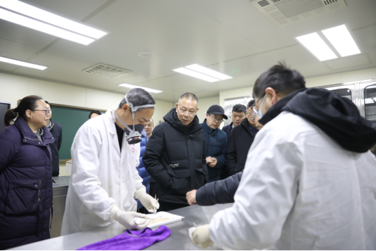 在衡阳医学院,唐忠阳一行实地调研了儿科罕见病教育部重点实验室、神经退行性疾病研究国家卫健委重点实验室、解剖教研室等教学科研平台,详细了解平台运行管理、技术研发创新、成果转化应用及人才培养实践等情况,与一线教职员工深入交流,听取意见建议。